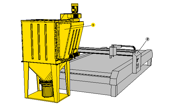 1 - polygonální odprašovací filtr WAMAIR?, 2 - laserová nebo plasmová řezačka --- Dodáváme pouze výrobky označené barevně --- (žlutě, červeně, modře, zeleně, atd.)